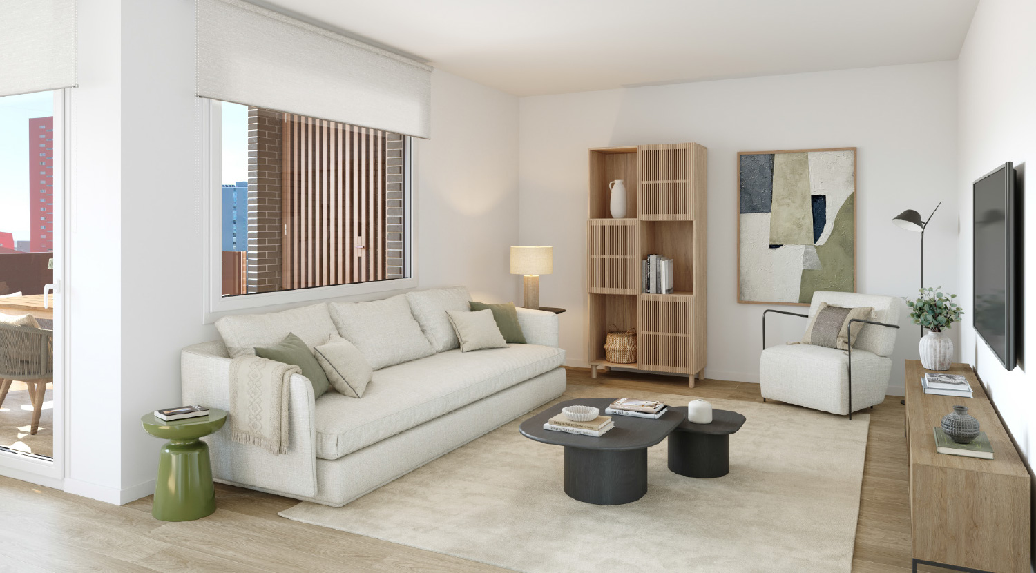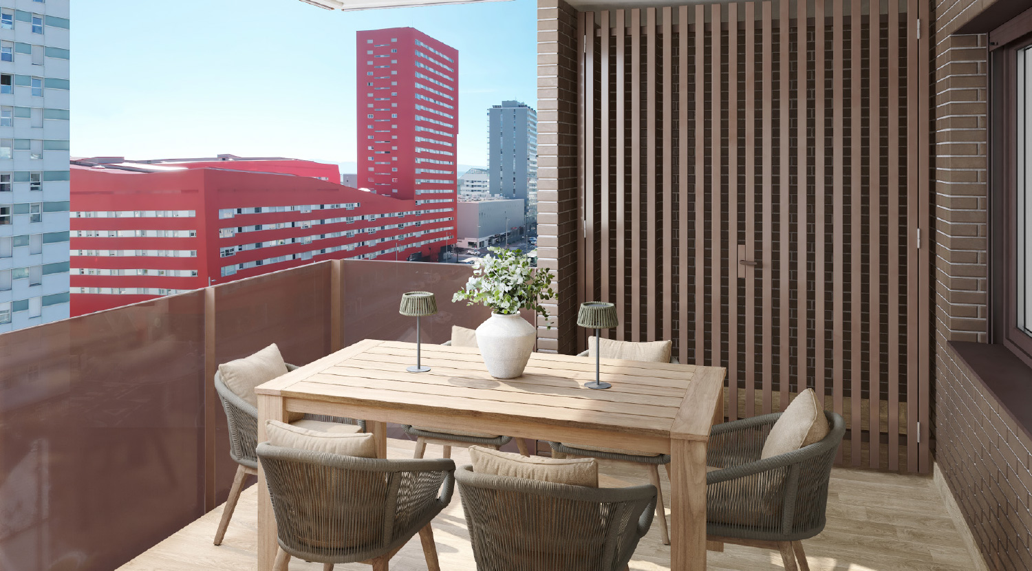 • Carpintería exterior de altas prestaciones aislantes y apertura oscilobatiente.