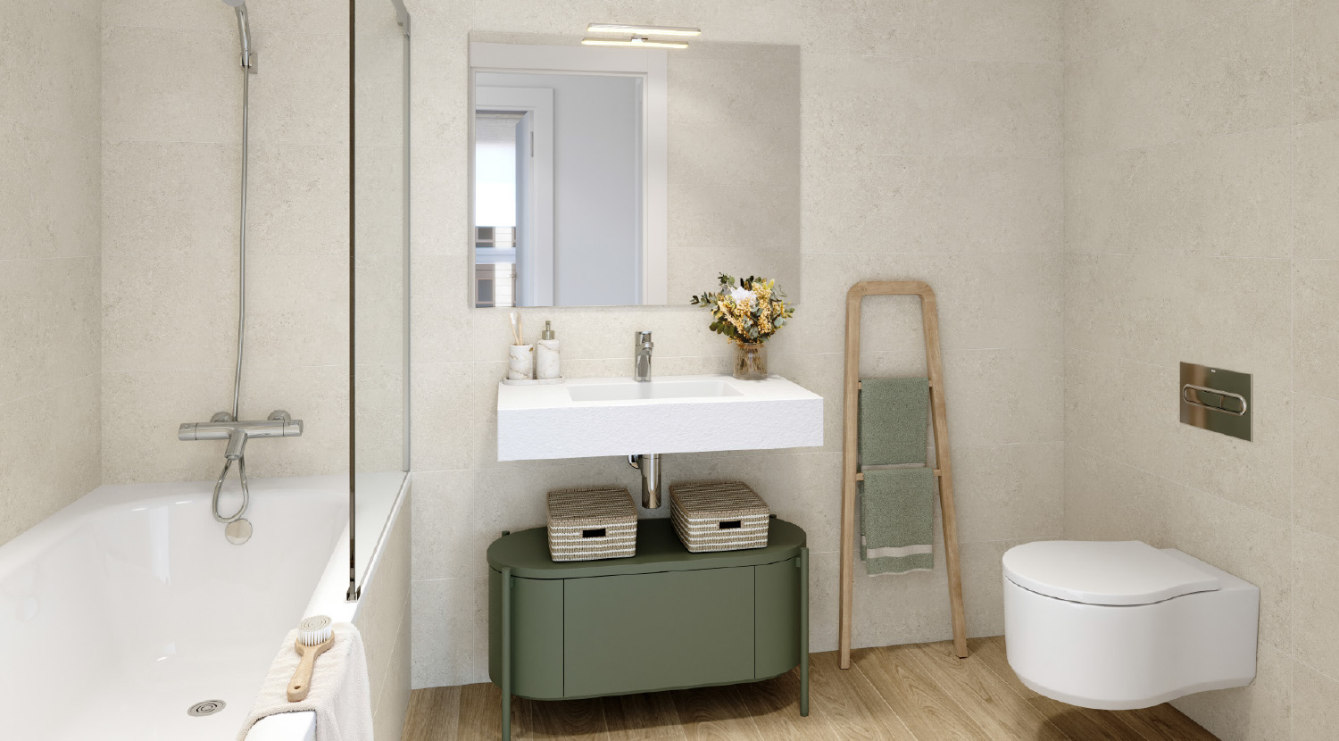 • En cocinas y baños, cerámica de primera calidad con posibilidad de elección